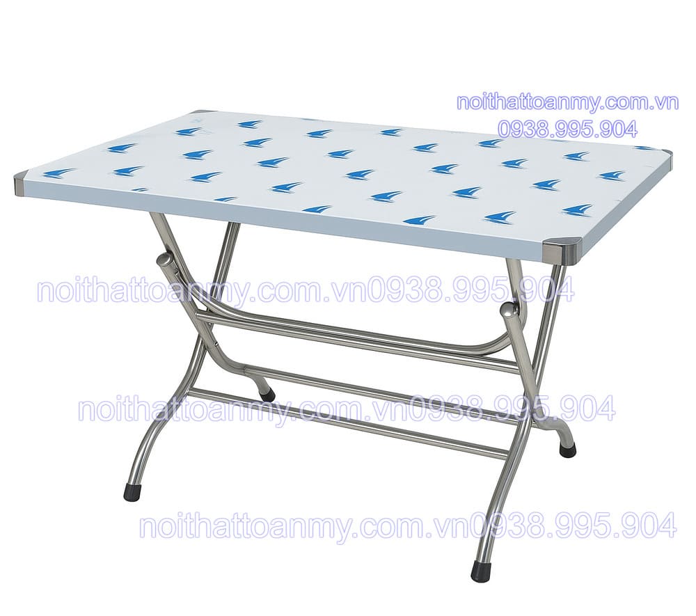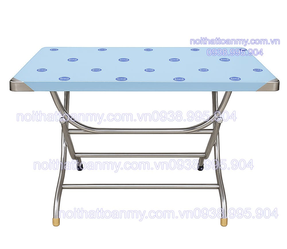 - Bàn inox xếp chữ nhật 1m có thiết kế đơn giản, gọn nhẹ và dễ dàng di chuyển. Với khả năng gấp gọn, bàn có thể được xếp lại khi không sử dụng để tiết kiệm không gian cất giữ. Điều này rất hữu ích đối với các quán ăn, nhà hàng hay gia đình có diện tích nhỏ.