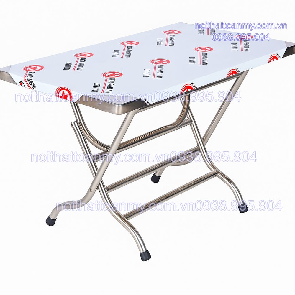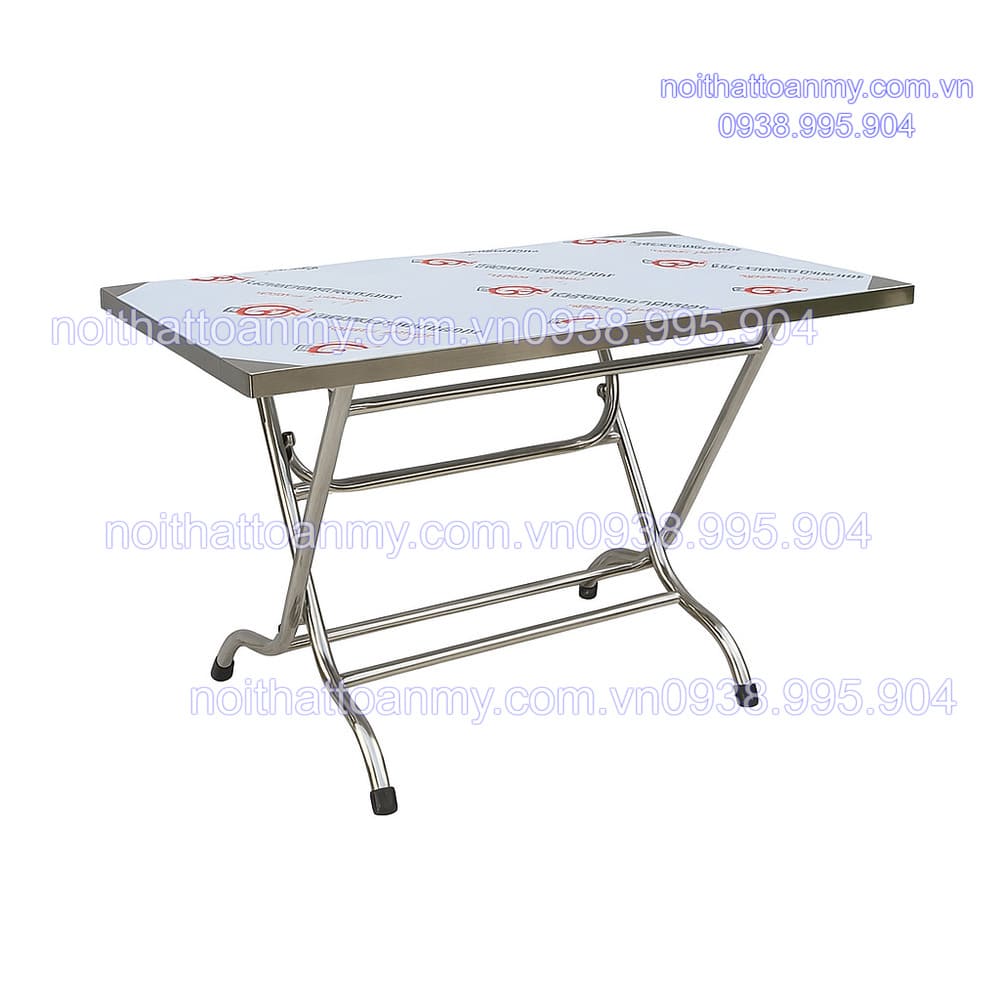 Bàn inox chữ nhật 1m2 được làm từ inox chịu lực chất lượng cao, sáng bóng, chống gỉ sét và chịu lực tốt. Thiết kế xếp gọn hiện đại, chắc chắn, dễ lau chùi, phù hợp sử dụng trong gia đình, quán ăn, nhà hàng hay khu bếp công nghiệp.