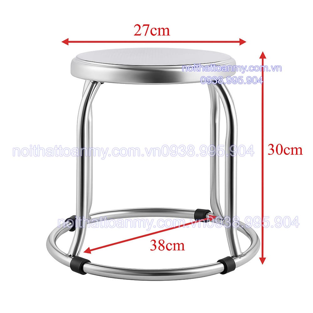 - Mặt ghế: Inox đường kính 280mm, dày 1mm hoặc nệm simili dày 30mm nhiều màu